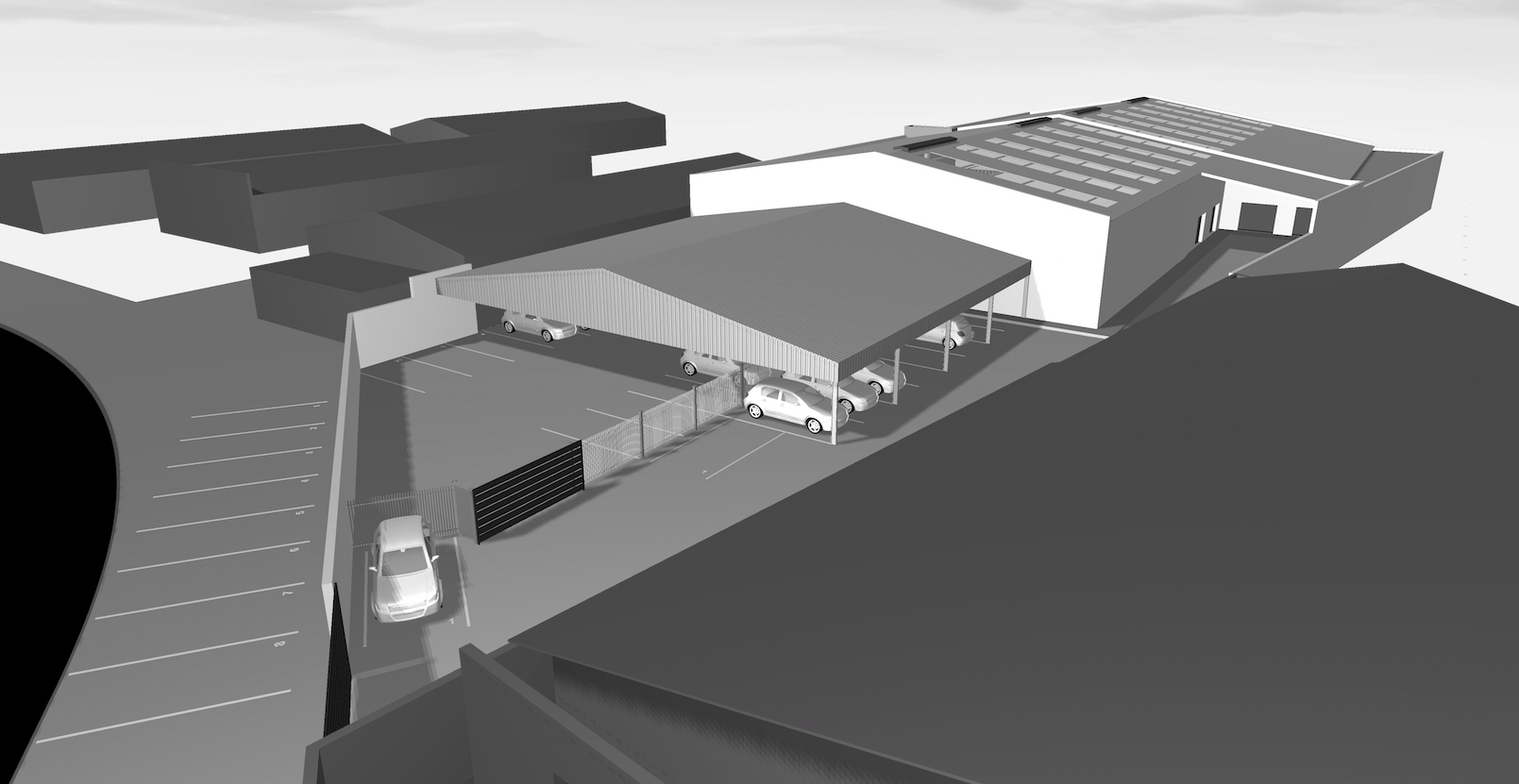 Design of a large factory and warehouse facility.
